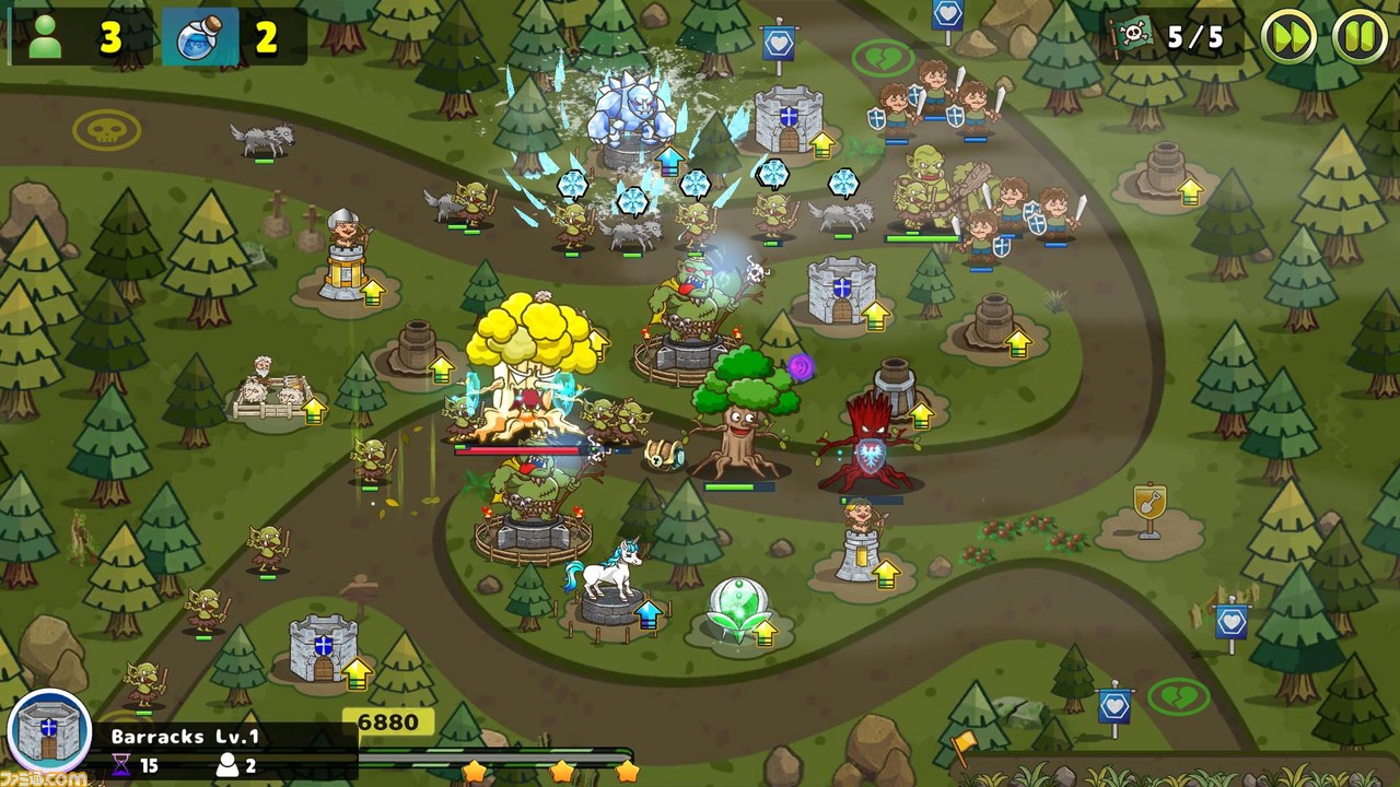 牧場で人口を増やし防衛タワーを強化する2Dタワーディフェンスゲーム。全てのボスは倒すことで仲間にできる。