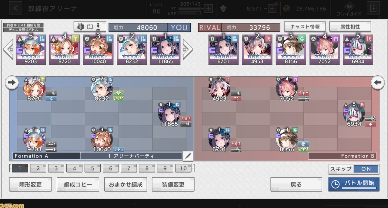 開発課に所属し、かつみんなで連携しながらがんばらないと難しい期間限定対戦イベント“開発課コロシアム”のランキングに関してはたいへんかとは思いますが、それ以外の1対1のシーズン制バトル“取締役アリーナ”、3対3で戦う“代表取締役アリーナ”に関しては適度な参加で、緩く楽しめます。