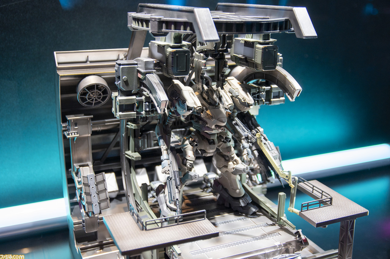 スタチューだけでも19cm、さらにガレージのジオラマは全高32cmを超えており、その存在感はまさに圧巻。そんなスタチューは、展示中のショーケースの中から『AC6』の先行体験をしているユーザーたちを静かに見守っていた。