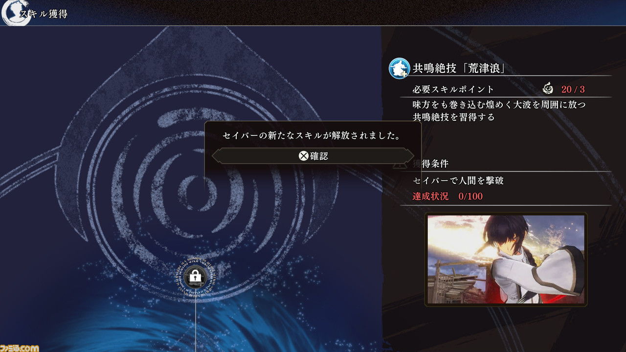 3rdトレーラーで見られる内容の他にも、何にでも興味を示すセイバーに江戸の町を紹介したり、時にはあちこちで起こるケンカの仲裁をしたりなど、様々な出来事をセイバーと体験していくことになります。それらの体験によって、戦闘中セイバーの力を借りるために必要な「共鳴ゲージ」が上昇するため、セイバーとたくさん町を巡って共鳴ゲージを事前に溜めておき、戦闘時に大技で一気に敵を追い詰める、といった戦い方が可能になります。