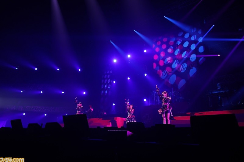 MCを終えたところで、ライブもラストスパート。本パートはナターリアのソロ曲『ソウソウ』(生田さん)から。サンバのリズムが楽しい同曲を、会場のみんなでいっしょに歌って存分に楽しんだ。そこから、疾走感溢れるアレンジの『ミラーボール・ラブ』(飯田さん、原田さん、安野さん、森下さん)、星輝子のソロ3曲目である『WET』(松田さん)、モノクロームリリィ(渕上さん、飯田さん)の新曲でハイテンポなゴシックロック『D-ark L-ily's Grin』、ダークでハードロックなアレンジとなった『アタシポンコツアンドロイド』(高田さん、安齋さん、原田さん)、激しさ全開の『Drastic Melody』(佐倉さん、生田さん、安野さん)と続き、オリジナルメンバーである渕上さん、松井さんに、藍原さん、青木さん、金子さん、木村さんが加わった6名による『Trinity Field』と、アツい楽曲のラッシュで終盤になっても会場のボルテージは上昇し続けた。