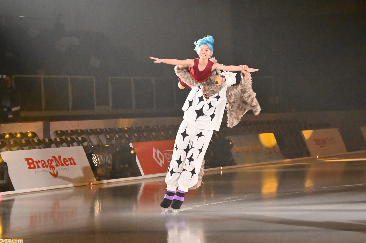 すらりとした長い脚はスケート靴のおかげでさらに長く見える。キックで戦うキャラだけに、ジャンプやスピンとの相性は言わずもがな。スケートのスピード感を活かしたボン・クレー(演:本郷理華さん)戦の大立ち回りを、観客は固唾を飲んで見守った。