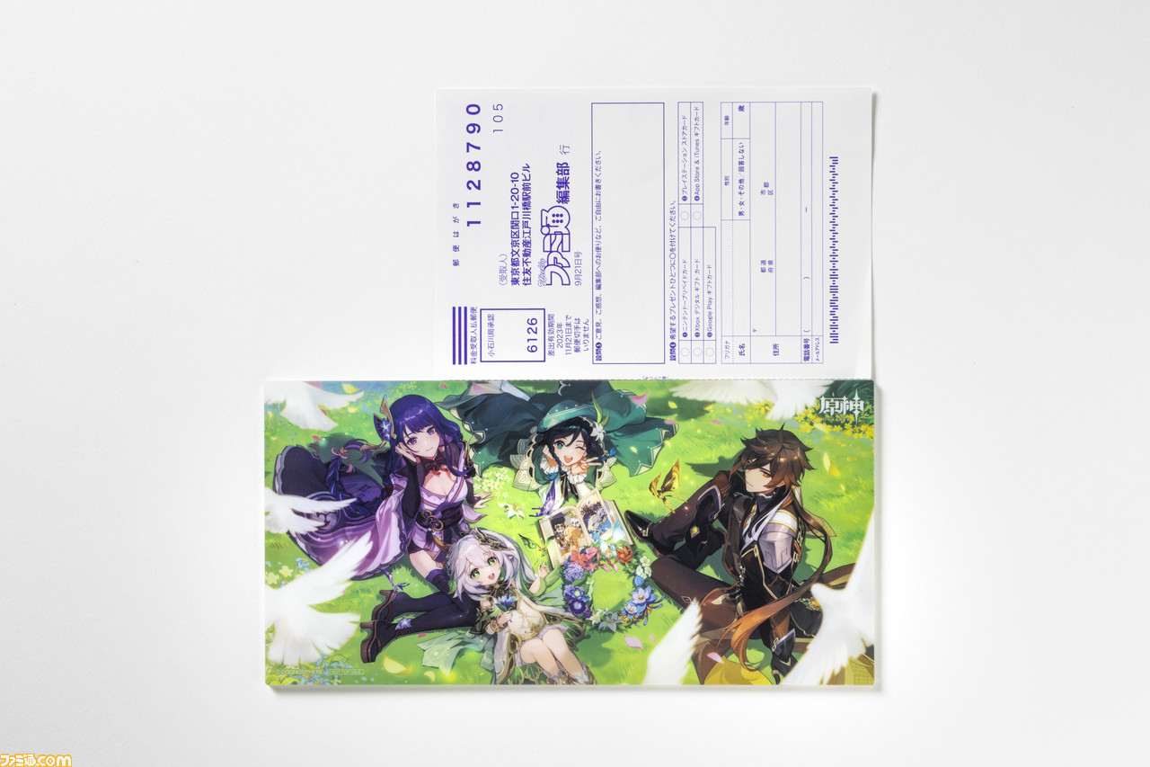 さらに、昨年に引き続き今年も実施される、『原神』のオリジナルグッズ付きの週刊ファミ通“グッズ付き限定版”のグッズのサンプルを独占入手! そこで今回は、編集部で撮影した限定版グッズのサンプル写真を公開します。