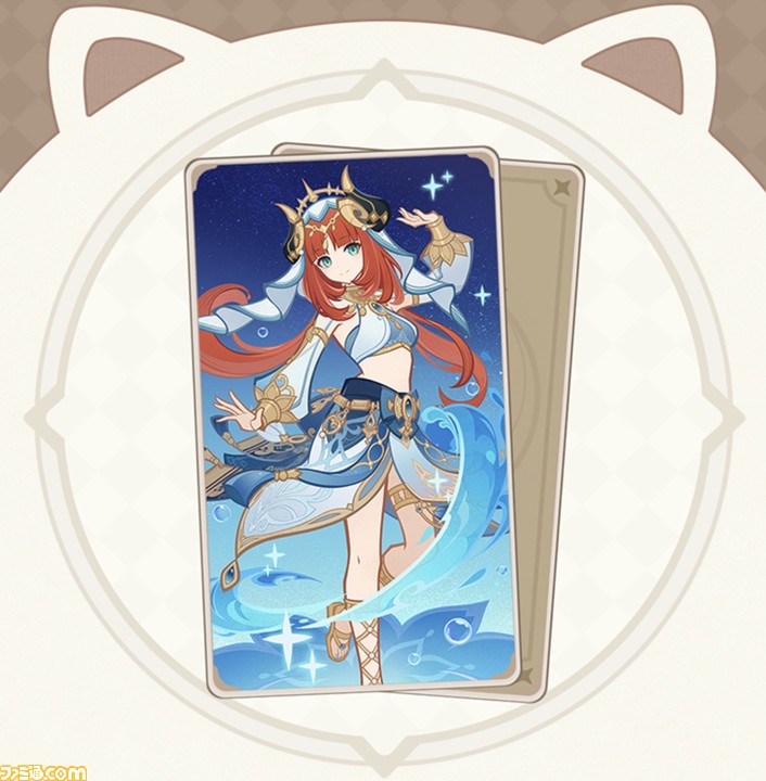 元素スキルでは、特製の写真機“ヴェリテくん”でターゲットを選び、持続的な氷元素ダメージを与える。元素爆発では、チーム全員のHPを回復し、“スクープフィールド”を展開。フィールド内の敵に持続的に氷元素ダメージを与え、味方のHPを持続的に回復する。
