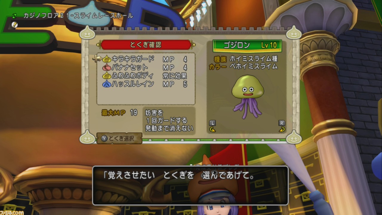 ダッシュの代わりにハッスルレインを覚えさせればよさそうだけど、とくぎを最大限活用するためには最大MPをSにしておきたいかも。というわけで、ホイミスライムを再育成することに。さようならゴジロン……。