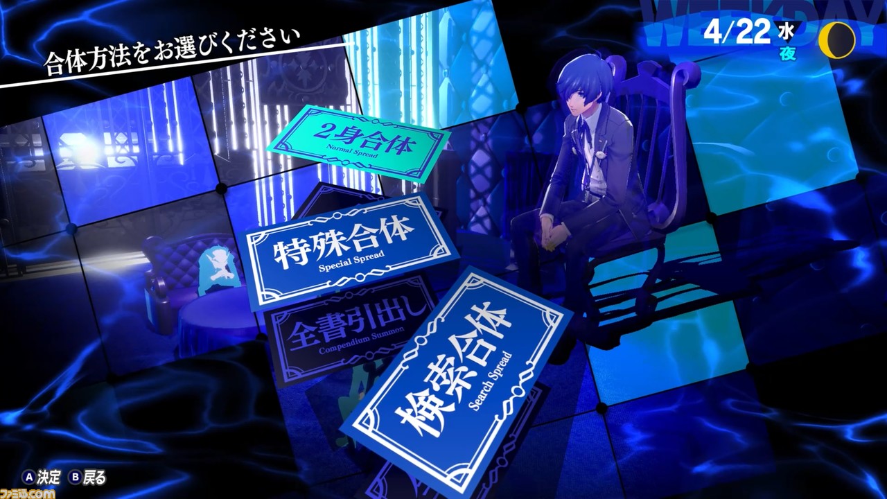 そして、ベルベットルームのいちばんの目玉が“ペルソナ合体”。2体のペルソナを組み合わせて新たなペルソナを生み出すこのシステムは、純粋にワクワクしておもしろい。3体のぺルソナを組み合わせる“特殊合体”もあり、合体システムを突き詰めるだけでも相当楽しめるだろう。
