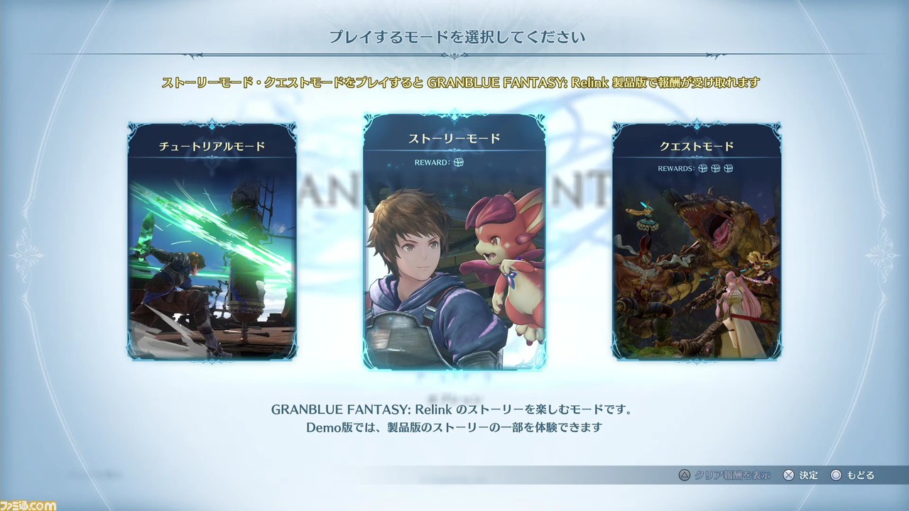 DEMO版にはチュートリアルモード、ストーリーモード、クエストモードの3つが収録されている。