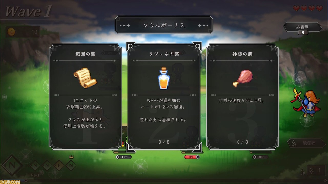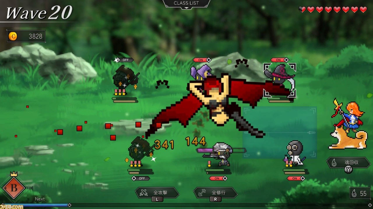 戦闘の隙をついて修行で強化し、魂を拾い、30WAVEを守り抜きましょう。