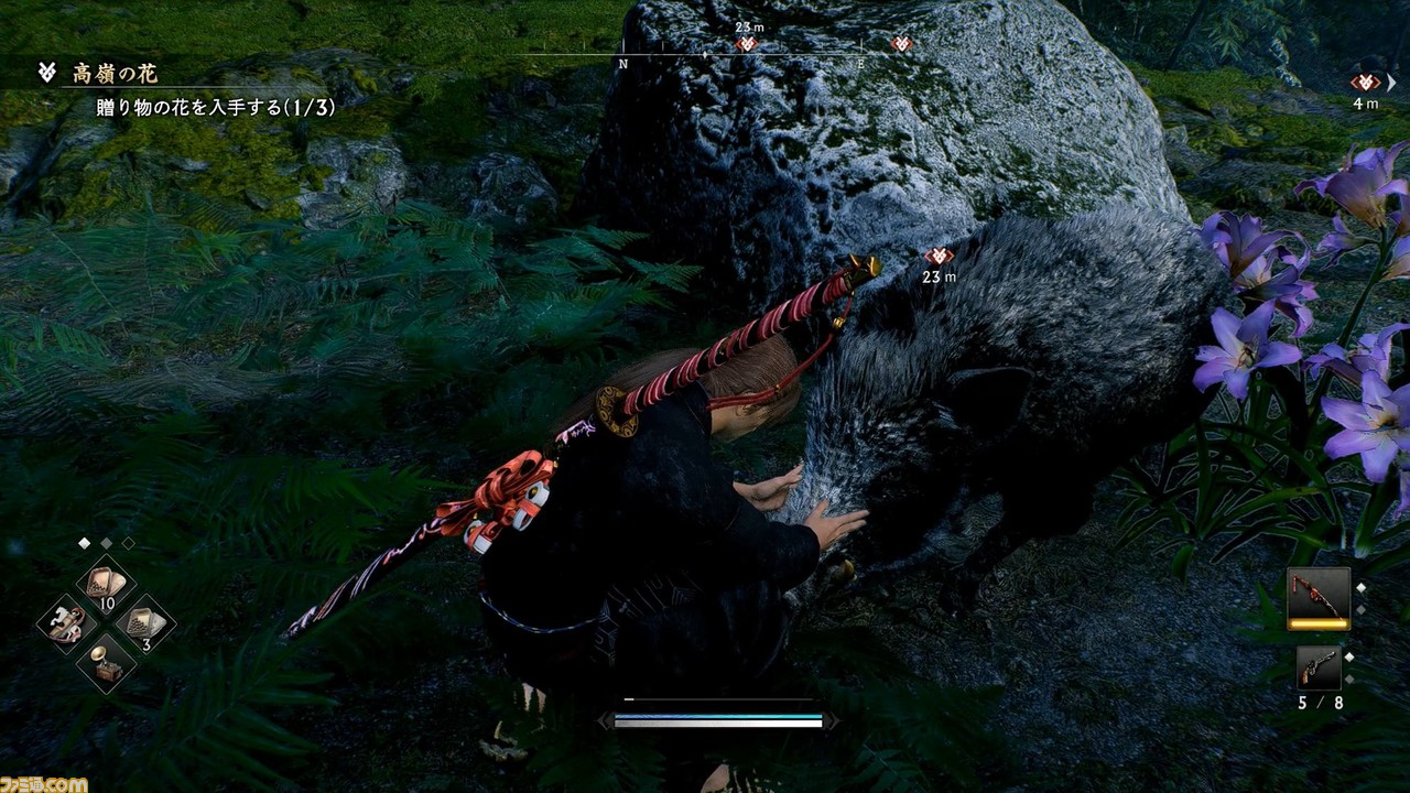 また、遠距離武器には弓や長銃(『仁王』で言うところの火縄銃)のほか、忍者になりきれる手裏剣、グレネードに近い陶玉、リボルバーガンを放つ短銃なども使用できる。サムライガンマンにだってなれるし、いわゆる火炎放射器である“捕火方”も登場。