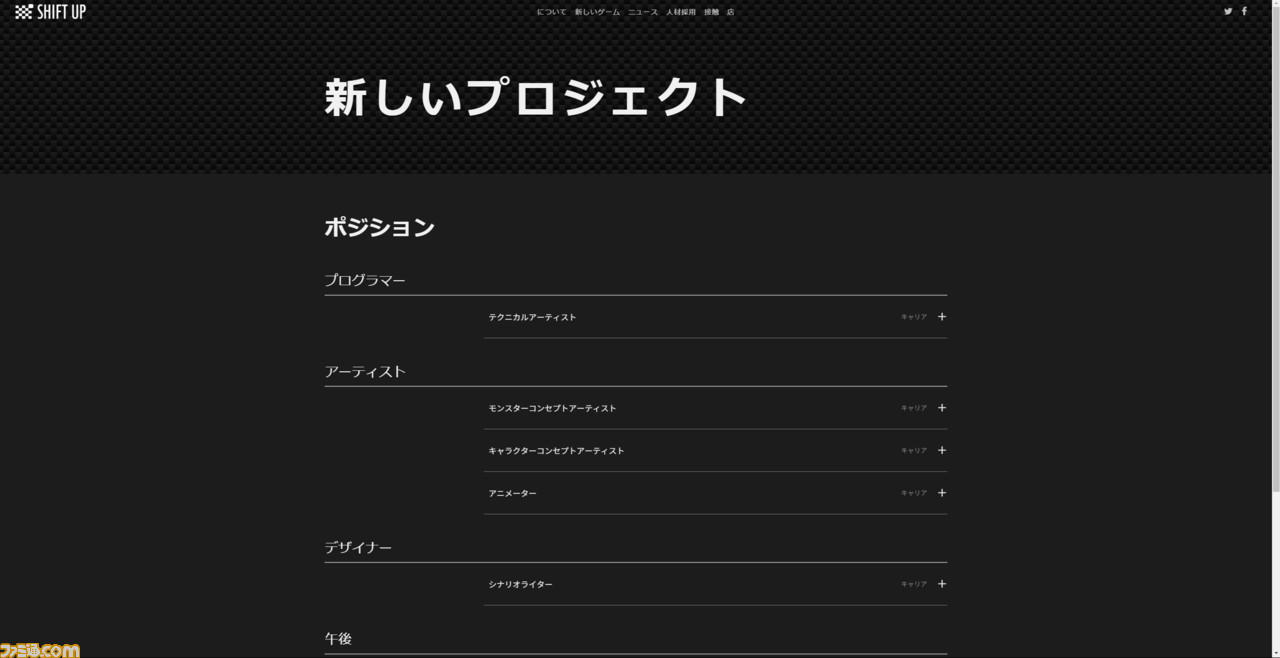 SHIFT UP公式サイトにて、新プロジェクトの求人募集ページが公開された。