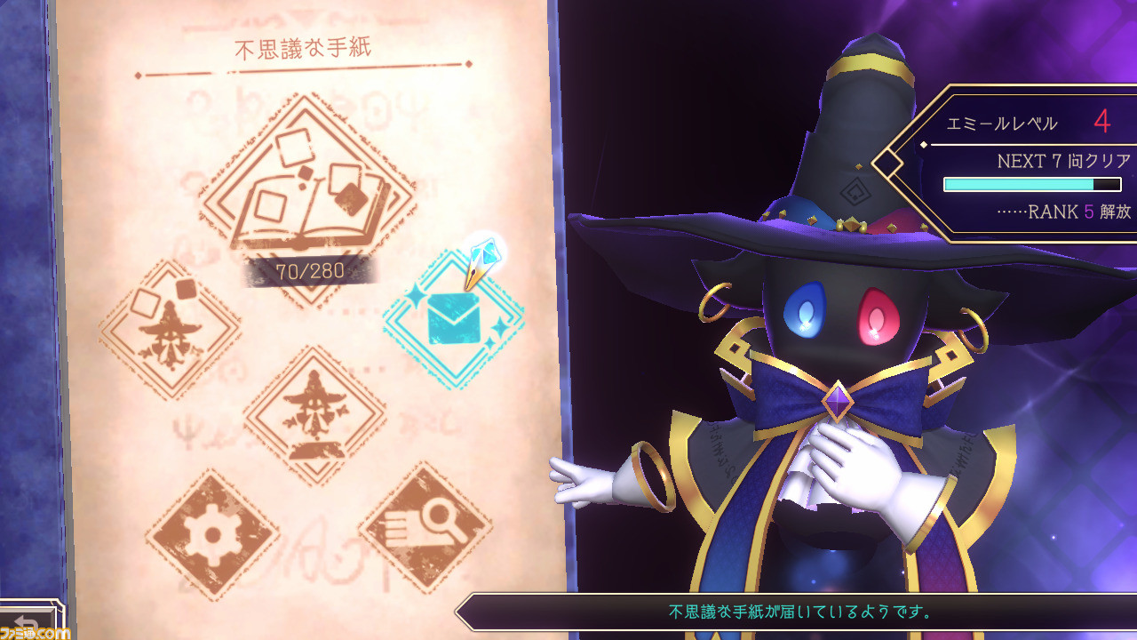 一緒に魔書の謎を解き明かすエミールは、アナタがロジアートの問題を解くごとに魔力がアップします。エミールの魔力がアップすることで、より多くの問題をフュージョンできるようになります。