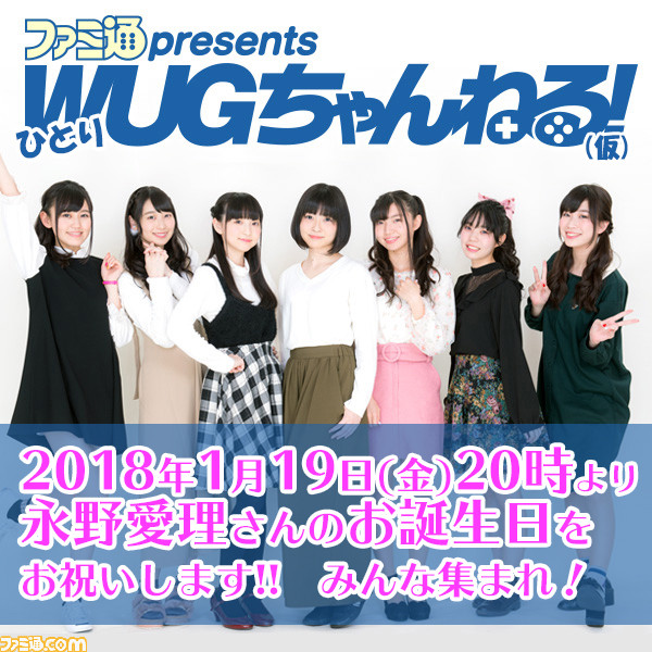 - 永野愛理さんのお誕生日当日(2018年1月19日)20時より『ファミ通presents ひとりWUGちゃんねる!(仮)』配信!
