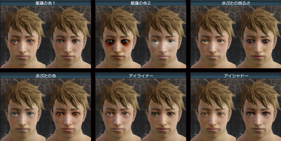 キャラクターカスタマイズは、各パーツごとに用意されているゲージを振り分けることで、変化させていくことになる。ここでは、各パーツのゲージの大小を極端に振り分けた際に、どのように変化するのかが解るように一覧で掲載している。ふたつの画像はゲージ左側にした状態が左の画像、ゲージ右側にした状態が右の画像となる。ぜひ参考にしてくれ!